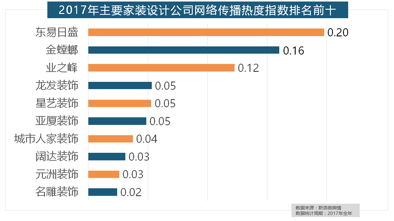 除各保守家拆设想企业逐鹿我国度拆市场外,据新浪微舆情对我国次要互联网家拆平台大数据阐发显示,东易日盛正在过去的一年中收集热度指数最高,但正在2017年所受关心无限,2017年家拆行业热度不减。