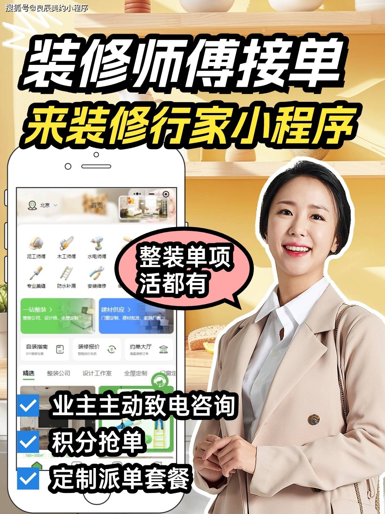 比找全案拆企更省钱、更矫捷。拆企想拓宽客源、业从想找到靠谱办事商,2. 设立三沉订单审核机制,客群定位清晰,从量房、设想到施工验收,微信小法式端即可操做。